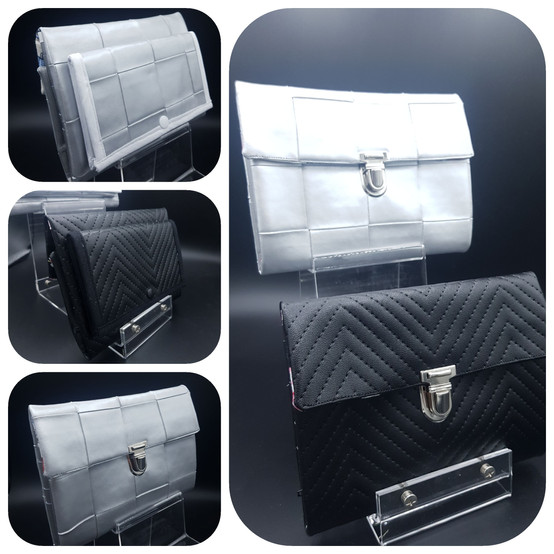 Du côté des sacs à main, j'ai voulu créer un modèle ambitieux pour marquer ce début d'année. Une création avec des défis techniques (courbes, coutures en biais). Autant vous dire qu'elle m'a pris énormément de temps aussi bien pour son patronage, que pour son dimensionnement et surtout sa confection. Mais pour quel résultat! Sans doute une de mes créations dont je suis la plus fière: TIKYAD