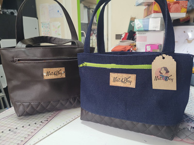 SKIRO, le mini cabas. A l'identique du sac cabas confectionné pour l'arrière-grand-mère de ma fille, mais en version mini. Pareil que pour DISCOTEK: il a énormément plu sur les réseaux sociaux. Je n'ai écouté que vous et le voici rejoignant gaiement la collection 2023 des créations Nat&Dey.
